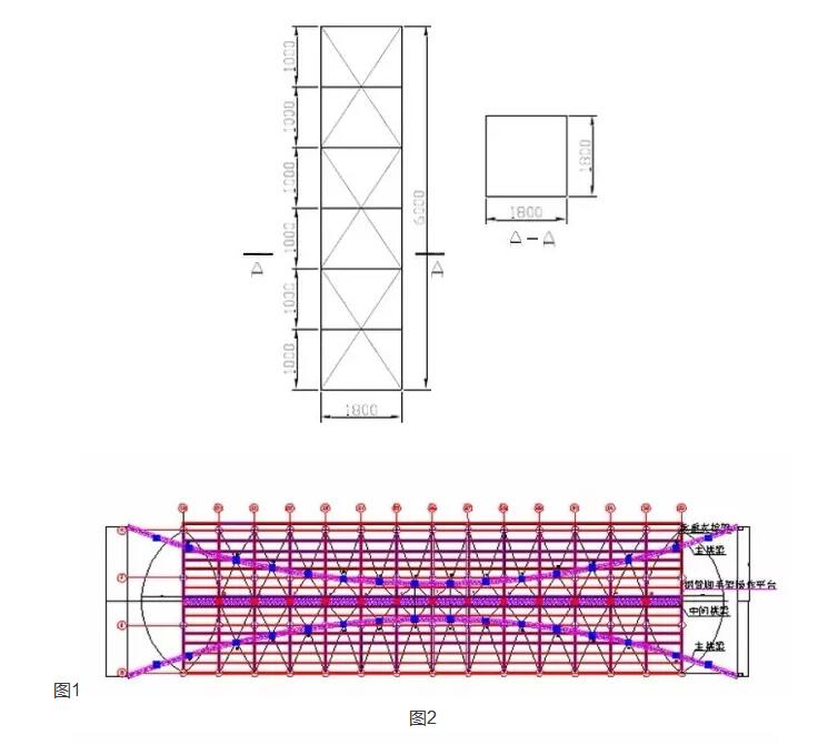 2.針對(duì)工程的結(jié)構(gòu)特點(diǎn)及施工順序和方法,同時(shí)結(jié)合現(xiàn)場(chǎng)的施工環(huán)境,合理選擇支撐架體的形式及規(guī)格。一般可采用格構(gòu)柱架體支撐,該格構(gòu)柱以6m為一個(gè)標(biāo)準(zhǔn)節(jié)(見(jiàn)圖1),并可根據(jù)不同的主拱安裝形式,以及施工順序進(jìn)行支承架的布設(shè)(見(jiàn)圖2)。鋼結(jié)構(gòu)主拱支撐架體設(shè)臵平面圖及圖3鋼結(jié)構(gòu)支撐架體立面圖。